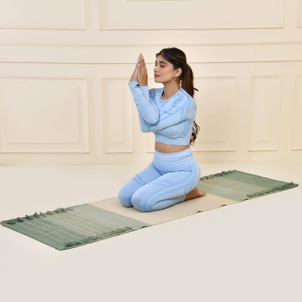 Discover the perfect companion for your yoga practice—a handwoven organic cotton mat that combines sustainability with unique artistry, ensuring each session is both comfortable and eco-conscious.